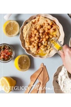 tzatziki, pasta oliwkowa, melitzanosalata, humus, fava