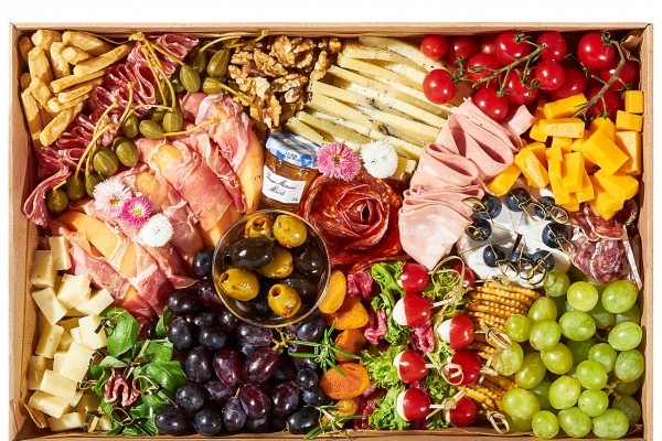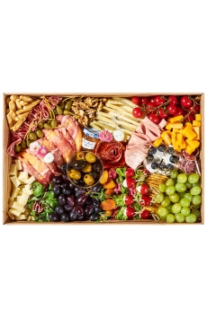 Pomidorki, marchew, seler, papryka, oliwki, orzeszki, hummus, krakersy, grissini, ser lazur, cheddar red, winogron 0 268.00