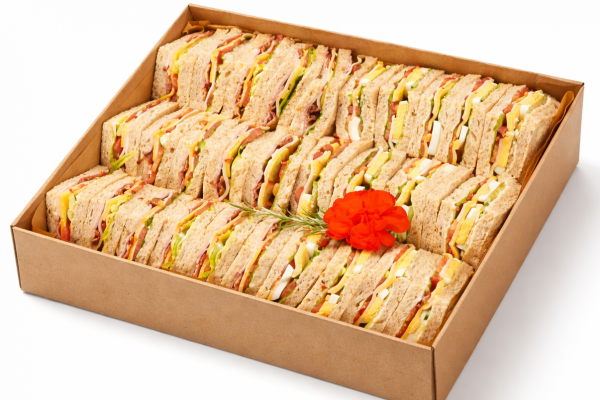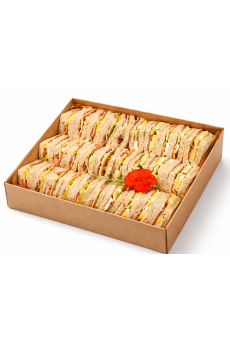 - 12x kanapki trójkąty na pieczywie tostowym z jajkiem - majonez, ser cheddar, ser, pomidor, ogórek, sałata
