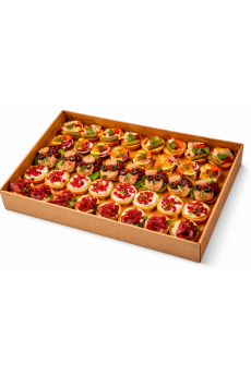 4 szt. Bruschettę pesto: pesto bazyliowe, pomidory suszone w oliwie, bazylia. (rozmiar tacy 32x32 cm) 0 132.00
