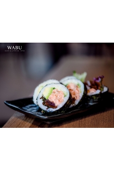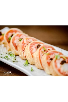 Ebi ten kuromai z opalonym łososiem i orzechami 6 szt.